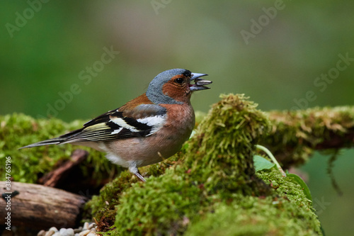 Common chaffinch ,,Fringilla coelebs,, in natural environment, danube forest, Slovakia, Europe
