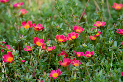 Common Purslane or Verdolaga or Pigweed or Little Hogweed or Pusley flower in the garden