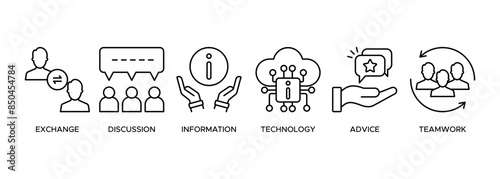 Communication banner web icon illustration concept with icon of exchange, discussion, information, technology, advice, and teamwork