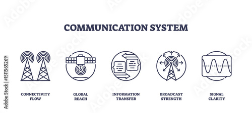 communication, system, connectivity, global, achieving, information, transfer, broadcast, strength, signal, clarity, wireless, digital, network, satellite, datum, transmission, telecom, technology, radio, tower, cyberspace, flow, mobile, broadcasting, telecom, coverage, modern, tech, outline, icon, set