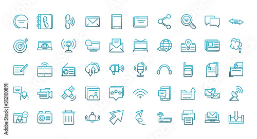 communication, bubble, text message, contact, address, phone, electronic mail, smartphone, share, target, earth, newspaper, television, radio, computer, analysis, talk, information, broadcast, icon, set, gradient, line, vector, illustration, icon, communication, symbol, media, broadcasting, flat, concept, news, design, technology, business, isolated, graphic, journalist, voice, multimedia, live, conference, background, object, breaking