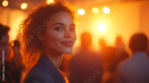 Community Manager Hosting Social Event concept as Community manager hosts social event attendees interact build community bonds festive atmosphere ample copy space for text. in Photo Stock Concept