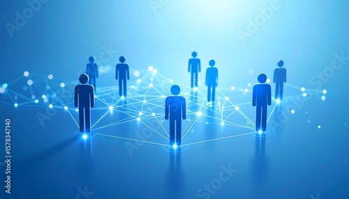 Community structure diagram with smoothly connected people silhouette 3D icons
