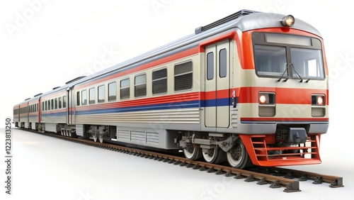 train, railway, railroad, transportation, commuter, transport, travel, vehicle, locomotive, carriage, car, wheel, track, rail, steel, metal, chassis, infrastructure, public, transit, passenger, modern, contemporary, speed, journey, route, destination, efficiency, system, network, line, engine, power, electricity, electric, motion, movement, perspective, white, background, isolated, studio, image, graphic