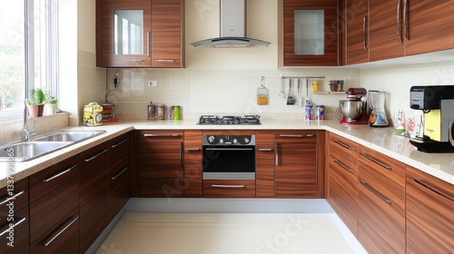 Compact kitchen design with efficient space utilization and sleek cabinetry.