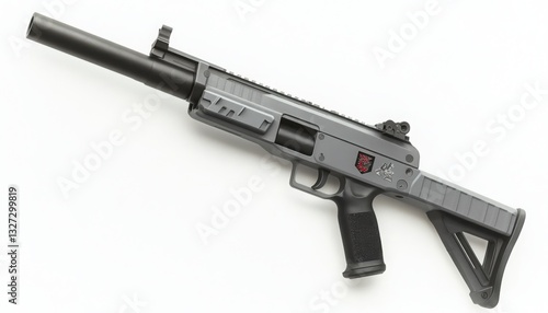 Compact submachine gun with silencer military-style matte gray finish transparent