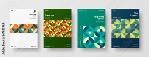 Company identity brochure template collection. Business presentation vector A4 vertical orientation front page mock up set. Corporate report cover abstract geometric illustration design layout bundle.