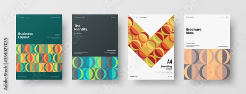 Company identity brochure template collection. Business presentation vector A4 vertical orientation front page mock up set. Corporate report cover abstract geometric illustration design layout bundle.