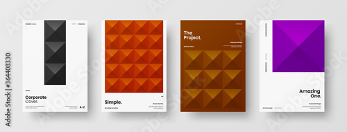 Company identity brochure template collection. Business presentation vector A4 vertical orientation front page mock up set. Corporate report cover abstract geometric illustration design layout bundle.