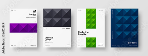 Company identity brochure template collection. Business presentation vector A4 vertical orientation front page mock up set. Corporate report cover abstract geometric illustration design layout bundle.