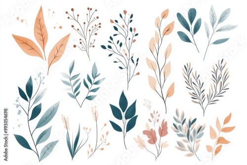 Compilation of classic botanical design features. Flowing frames, edges, and outlines in nostalgic style. Eclectic foliage and branch motifs for social media, packaging, or wedding stationery
