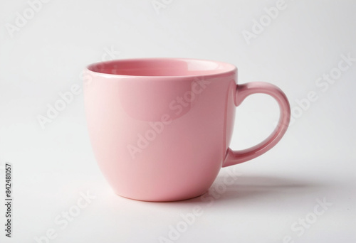 completely empty pink mug isolated on white background, isolated on a white background in advertising photography