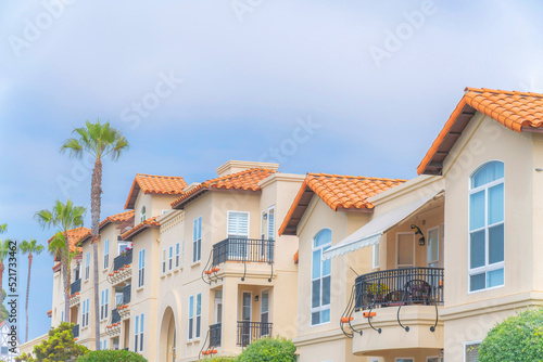 Complex apartment buildings with decorated balconies at Carlsbad, San Diego, California