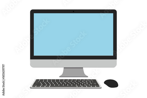 computer, monitor, screen, desktop, keyboard, mouse, blank, isolated, display, technology, modern, template, copy space, empty, front view, workstation, device, digital, web, design, business, office, cyberspace, realistic, equipment, workspace, communication, graphic, illustration, vector, personal, multimedia, electronic, object, contemporary, white, contraption