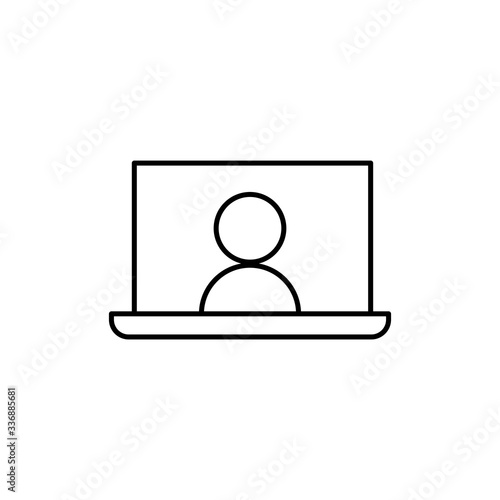 Computer screen icon with a live broadcast on a streaming channel with a symbol of a person having a video call or online conference meeting.