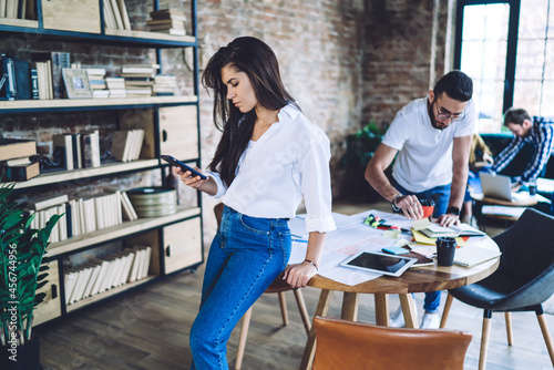 woman, men at work, workspace, smartphone, work, message, workplace, condensed, entrepreneur, serious, sharpened, browsing, female, confident, wooden, table, business, job, using, contraption, professional, device, cyberspace, surfing, office, connection, mobile, employee, manager, brunette, tied-up, modern, mobile phone, corporate, colleague, occupation, phone, elegant, co-worker, text message, project, typing, company, racked, digital, indoor, horizontal, blurred background