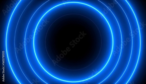 neon, circle, glowing, blue, ring, concentric, black, light, abstract, design, bright, geometric, shape, sharpened, circular, symmetry, glow, empty, background, modern, graphic, digital, aesthetic, art, tech, pattern, space