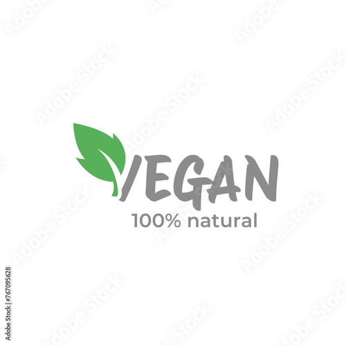Concept green vegan diet logo with leaf icon. Vector illustration isolated on white background