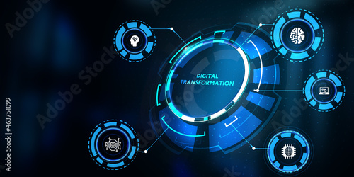 Concept of digitization of business processes and modern technology. Digital transformation. 3d illustration