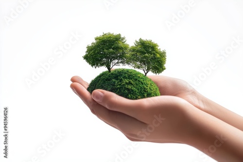 Concept of Earth Day - Hands Holding a Small Green Planet