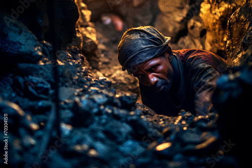 concept of poor African people suffer by extracting useful minerals in inhumane conditions. Cobalt mining in the Congo. Silent genocide in the Congo