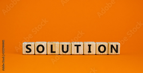 Concept word 'solution' on cubes on a beautiful orange background. Business concept. Copy space.
