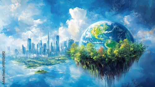 Conceptual artwork advocating for environmental awareness, vibrant colors, abstract forms, highlighting nature's beauty and fragility.
