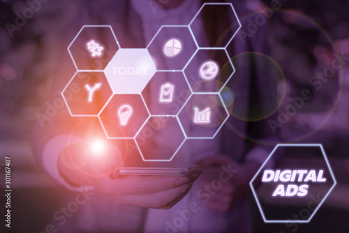 Conceptual hand writing showing Digital Ads. Concept meaning uses the Internet to deliver promotional marketing messages