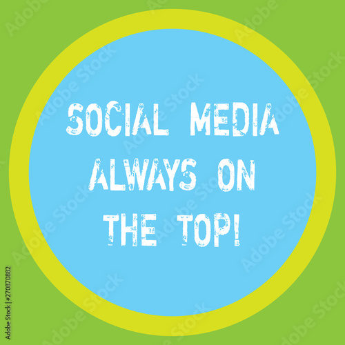 Conceptual hand writing showing Social Media Always On The Top. Business photo showcasing New digital communication technologies Big Circle Inside Another Round Shape with Border text Space