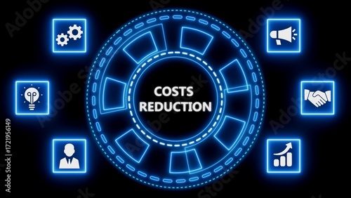 Conceptual illustration of costs reduction strategies and business optimization on black background