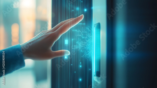 door, hand, hold, unlock, key, open, chips, embedded, electronic, electricity, electronic, future, futuristic, microchip, bod, finger, place, technology, lock, locking, security, house, residential, residence, concept, image, wireless, communication, handsfree, sensor, near future, system, control, authentication, high technology, intelligent, digital, touch