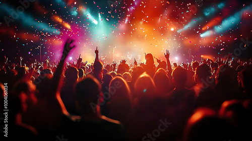 concert, party, light, crowd, stage, celebration, people, confetti, festival, music, entertainment, performance, fun, event, audience, nightlife, lively, hand, live, rock, atmosphere, joy, dj, band, night, musician, energy, silhouette, bright, excitement, cheer, happy, cheering, dance, festive, enjoyment, sound, vibrant, illuminated, fan, disco, dancing, colours, show, background