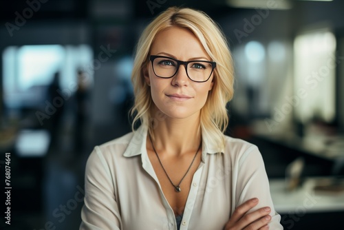 office, accounting, dress, casual attire, professional, woman, blond, confident, human face, person, clothing, smile, eyewear, indoor, goggles, ceiling, girl, wearing, accessory, attractive, shirt, intelligent, adult, style, head shot, fashion, modern, serious, eyeglass, stylish, beautiful, portrait, spectacle, blue, fashionable, trendy, elegant, outfit