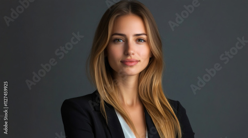 businesswoman, portrait, studio, business, professional, woman, confidence, executive, career, success, corporate, leadership, entrepreneur, smiling, grey, background, female, elegant, stylish, office, work, management, ambition, achievement, motivation, head shot, attractive, posing, hair, beauty, young, adult, caucasian, formal, attire