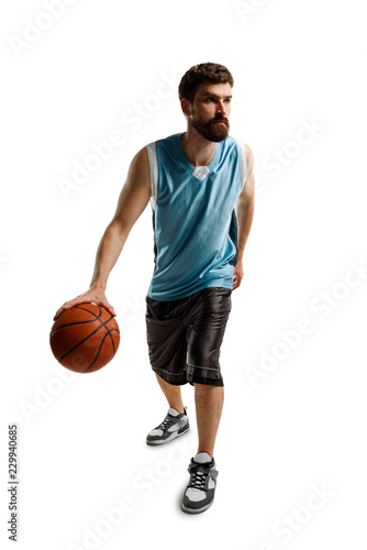 Confident basketball player on white