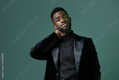 business, professional, man, suit, turtleneck, elegant, modern, fashionable, green, background, portrait, poised, formal, executive, corporate, office, leader, confident, male, model, chic, sophisticated, smart, attire, posh, trendy, black, dapper, gentleman, outfit, standing, successful, urban, contemporary, cool, sharp, photogenic, stylish, polished