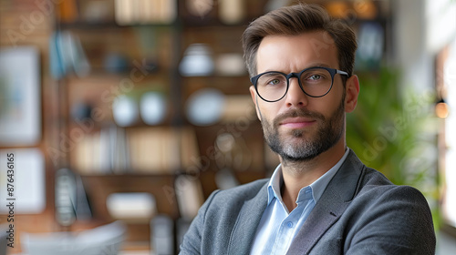 business, person, businessman, portrait, man, office, adult, male, professional, manager, looking, confidence, success, caucasian, smart, attractive, entrepreneur, young, beard, photogenic, goggles, modern, happy, successful, corporate, working, executive, face, smile, job, standing, indoor, stylish, occupation, suit, shirt, eyeglass, mature, lifestyle, casual attire, style, leadership, background, happiness, eyewear, thoughtful, serious, thinking