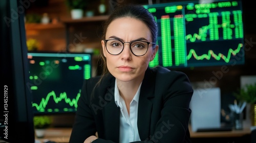 Confident Businesswoman Stock Market Data Analysis