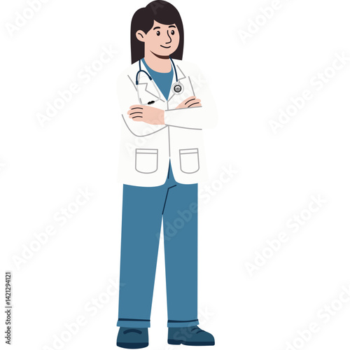 diversity, work, job, labour day, labor, men at work, profession, professional, labourer, occupation, doctor, healthcare professional, physician, stethoscope, arms crossed, confident, medicals, health, medicine, clinic, hospital, exam, diagnosis, labcoat, full body, illustration, vector, graphic, clip art, design, character, cartoon, examining, listening, check-up, wellness, science, research