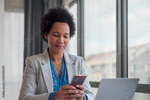 businesswoman, mobile, phone, text, messaging, smiling, laptop, communication, technology, office, business, working, connection, wireless, corporate, occupation, professional, entrepreneur, smartphone, cyberspace, modern, using, online, desk, finance, holding, global, confidence, stress, leadership, positive, indoor, afro, coiffure, workplace, manager, selective, sharpened, window, sitting, 1, person, young, woman, female, woman, adult, people, portrait