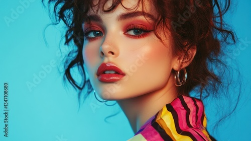 Confident girl in 90s fashion with trendy makeup and hair