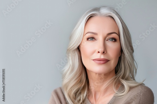 mature, woman, blue, eye, white, hair, portrait, smiling, neutral, background, poised, elegant, confident, female, closeup, beauty, grace, ageing, sophisticated, natural, light, serene, head shot, attractive, caucasian, middle-aged, skincare, lifestyle, gracefully, eye, contact, soft, smile, casual attire, clothing, simplicity, timeless, person, individual, photo, shoot, calmness, happiness, fashion, complexion, adult, elegance, charme