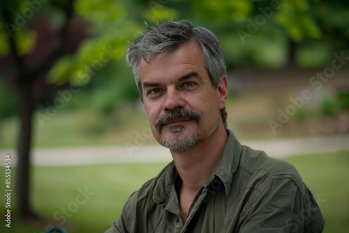 confident, middle-aged, man, caucasian, beard, adult, mature, portrait, casual attire, style, fashion, male, photogenic, person, gaze, serious, expression, natural, park, individual, green, background, relaxed, facial, hair, smart, greenery, nature, charismatic, thoughtful, wrinkle, life events, ageing, serene, composure, presence, silver, fox, stylish, real