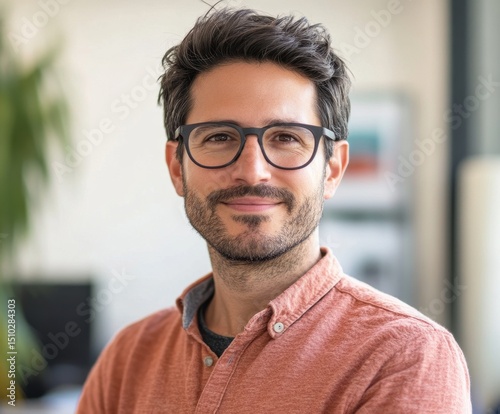Confident Professional's Portrait: A professional individual with glasses, radiating confidence, poised and ready to embrace the challenges and opportunities.