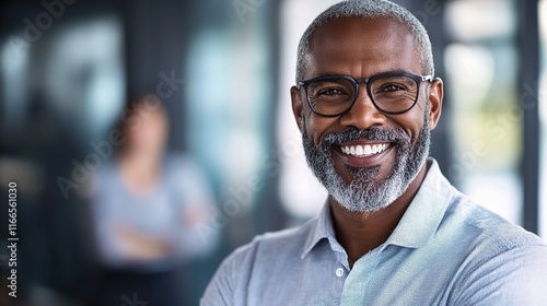 Confident Smiling Businessman in Modern Office Setting