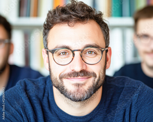 Confident smiling man in glasses professional office portrait close-up
