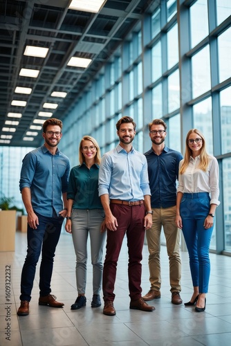 team, professional, business, office, lobby, modern, corporate, colleague, group, portrait, success, achievement, partnership, leadership, innovation, employee, manpower, career, collaboration, communication, strategy, finance, marketing, technology, networking, meeting, conference, presentation, urban, interior, architecture, building, bright, indoor, upscale, contemporary, diverse