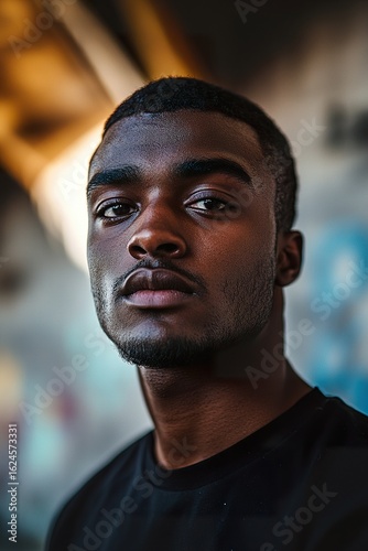 person, vertical, african american, african, man, black, confident, portrait, american, attitude, ethnic, gaze, intense, masculine, mature, powerful, tough, youth, strength, determined, expression, male, looking, strong, contemporary, independent, serious, face, charisma, bold, cool, photogenic, modern, young, sharpened, stylish, dark, casual attire, urban, beard, authenticity, closeup