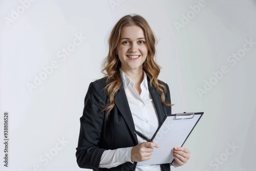 accountant, auditor, agent, analysis, workplace, adviser, assistant, woman, business, businesswoman, people, office, person, beauty, smiling, smile, secretary, holding, pen, laptop, notebook, work, folder, computer, writing, clipboard, suit, professional, standing, men at work, student, technology