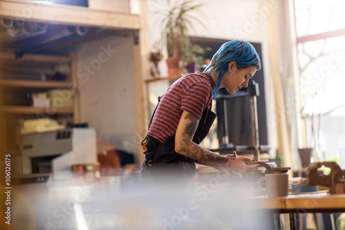 bricolage, hipster, colourful, hair, tattoo, woman, female, owner, profession, service, workshop, small business, employee, working, technician, workplace, maintenance, adult, people, expert, entrepreneur, occupation, skill, craft, garage, hobby, lifestyle, tool, one person, concentration, creativity, precision, hand-made, quality, creative, plank, shop, carpenter, carpenter's shop, wood, woodworker, safety, repair, mender, woodwork, artisan